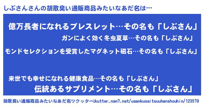 | 男性向けラノベタイトル風あだ名 | 『ノーゲーム・ノーシブサン』 |