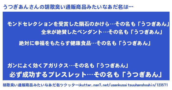 | ヒーロー風カッコイイあだ名 | 『ネオウツギアン』『スーパーウツギアン』 |