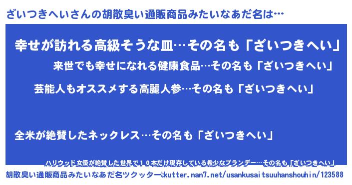 | 意味不明あだ名 | 『自称ざいつきへい』 |