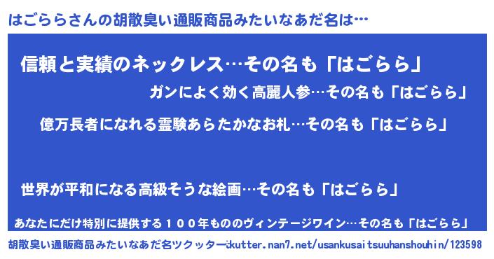 | ヒーロー風カッコイイあだ名 | 『スーパーハゴララ』『暗黒騎士ハゴ』 |