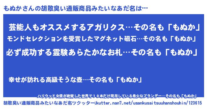 | 恥ずかしいあだ名 | 『プリティーもぬか』『モヌカデラックス』 |