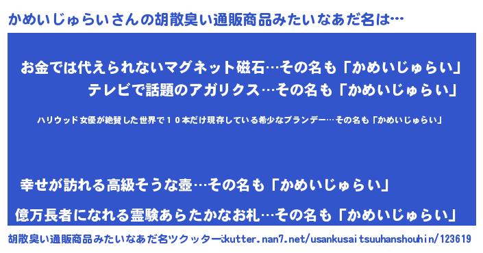 | 男性向けラノベタイトル風あだ名 | 『カメイジュライスレイヤー』 |