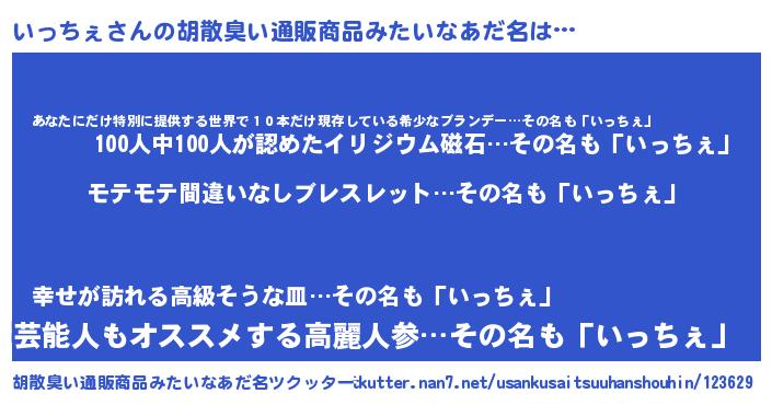 | 意味不明あだ名 | 『ペロリンいっちぇ』『自称いっちぇ』 |