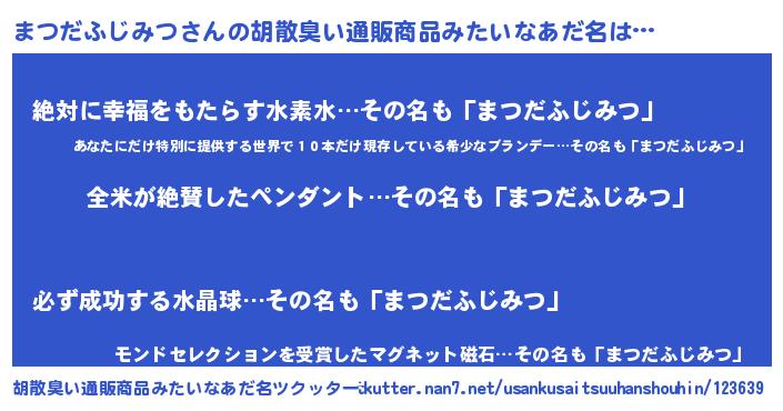 | 意味不明あだ名 | 『とにかく怪しいまつだふじみつ』 |