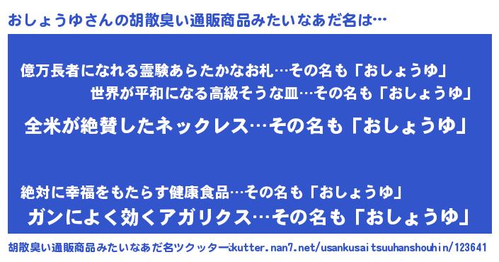 | 意味不明あだ名 | 『とにかく怪しいおしょうゆ』 |