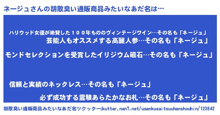 | ヘコむあだ名 | 『ネーにゅー』『ネー太郎』『つくし』 |