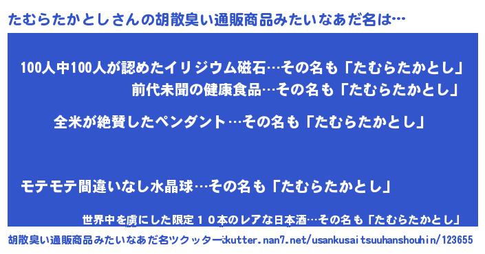 | 意味不明あだ名 | 『とにかく怪しいたむらたかとし』 |