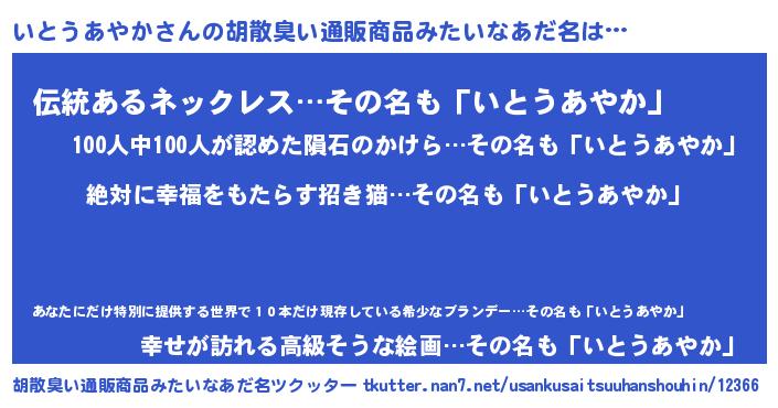 | 意味不明あだ名 | 『永久保存いとうあやか』 |