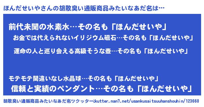 | ヒーロー風カッコイイあだ名 | 『ウルトラほんだせいやマン』 |