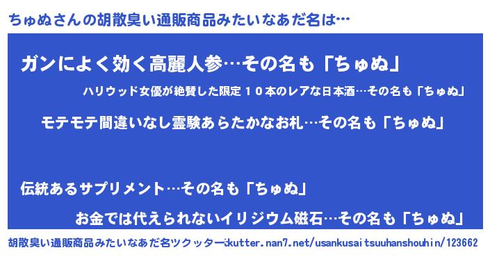 ちゅぬさんの胡散臭い通販商品みたいなあだ名をツクッター!