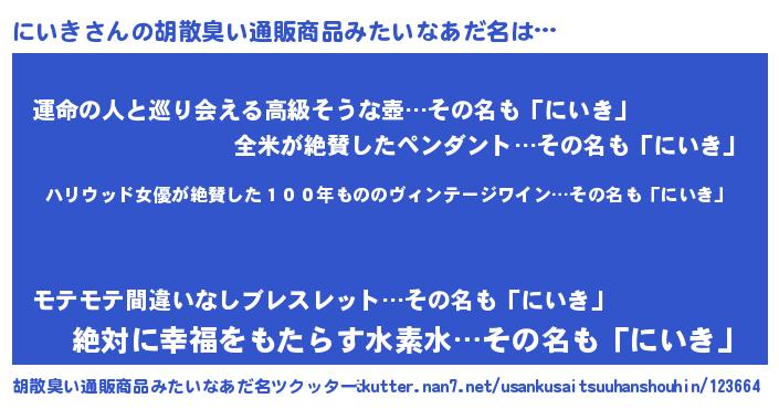 | 意味不明あだ名 | 『住所不定無職にいき(3歳)』 |