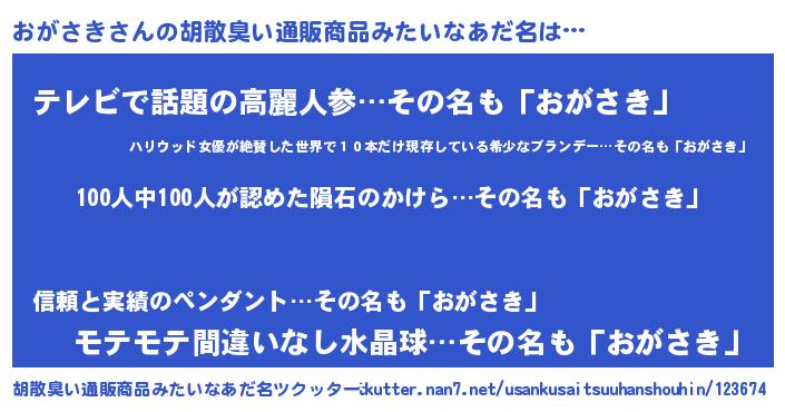 | ヘコむあだ名 | 『おがもー』『おがお』『なまこ酢』 |