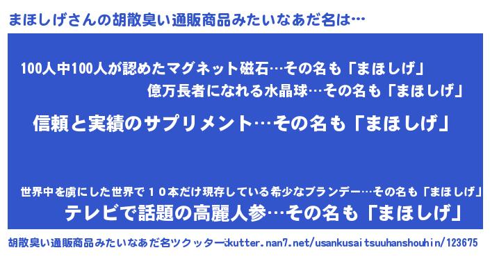 | 意味不明あだ名 | 『とにかく怪しいまほしげ』 |