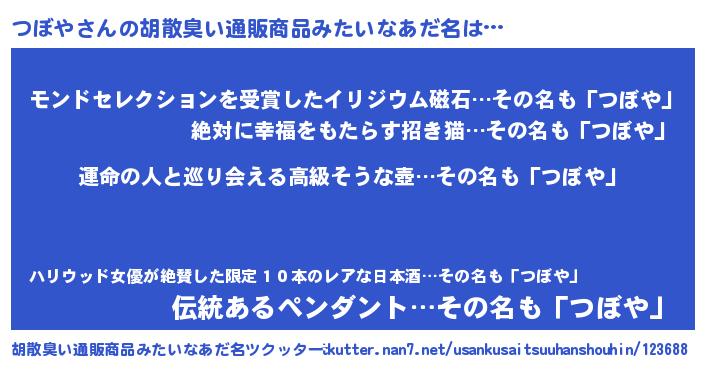| 女子向けラノベタイトル風あだ名 | 『つぼやの婚約者』『つぼや恋絵巻』 |