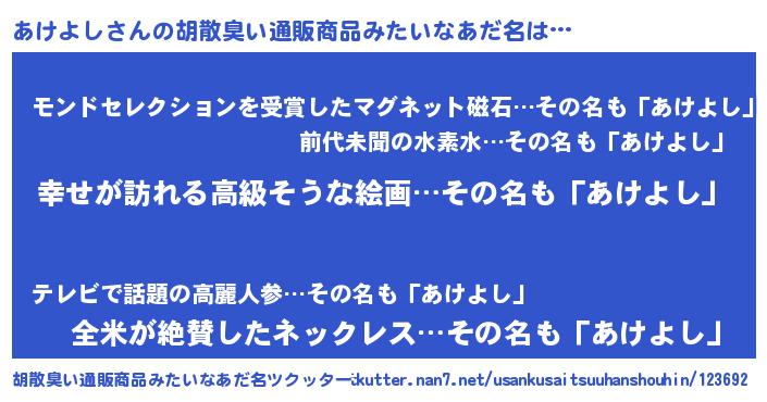 | 意味不明あだ名 | 『あけよしフォーエバー』 |