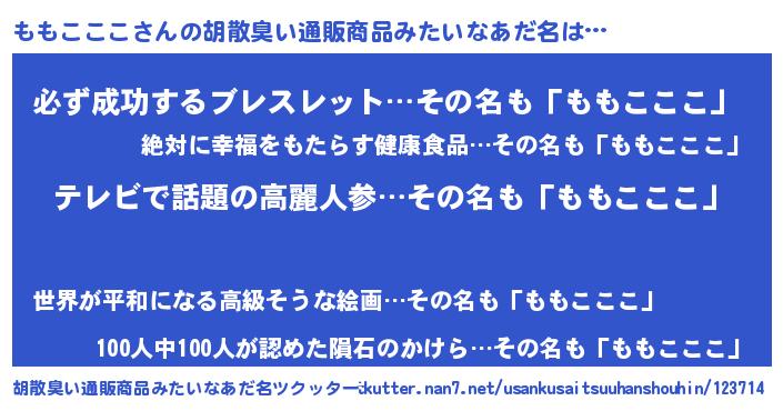 | 意味不明あだ名 | 『自称ももこここ』『ペロリンももこここ』 |