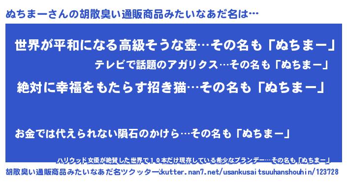 | ヘコむあだ名 | 『ぬちまー(小並感)』『豆乳』 |