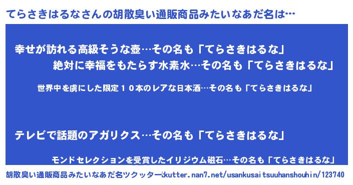 | 意味不明あだ名 | 『住所不定無職てらさきはるな(47歳)』 |