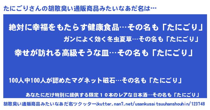 | 男性向けラノベタイトル風あだ名 | 『はたらくたにごりさま!』 |