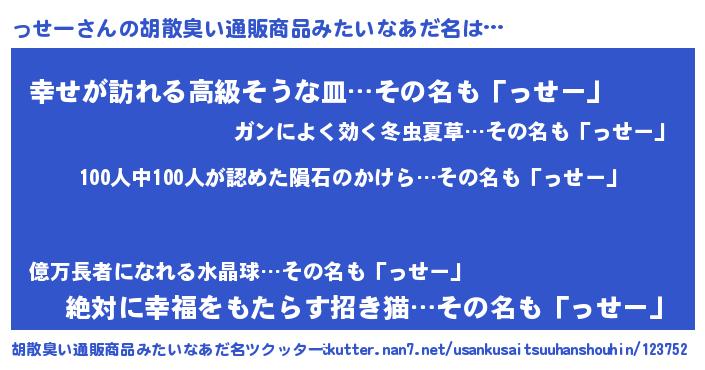 | 意味不明あだ名 | 『眠気覚ましガムっせー味』『自称っせー』 |