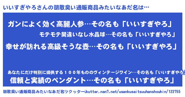 | 意味不明あだ名 | 『いいすぎやろフォーエバー』 |