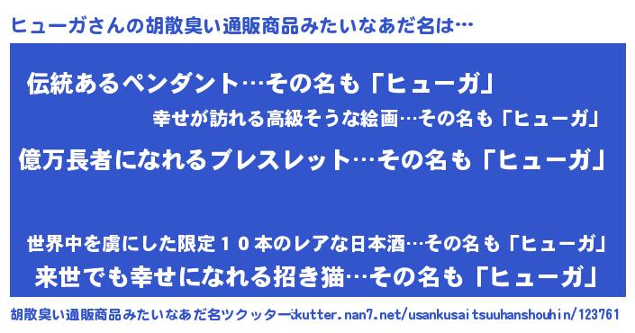 | ヒーロー風カッコイイあだ名 | 『スーパーヒューガ』『銀牙騎士ヒュ』 |