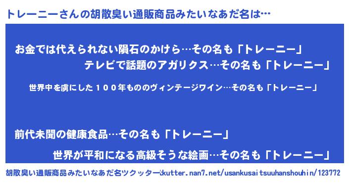 | 意味不明あだ名 | 『住所不定無職トレーニー(8歳)』 |