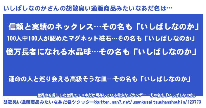 | 男性向けラノベタイトル風あだ名 | 『イシバシナノカアートオンライン』 |