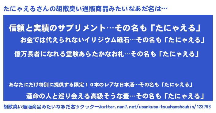 | 意味不明あだ名 | 『ペロリンたにゃえる』 |