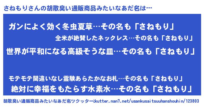 さねもりさんの胡散臭い通販商品みたいなあだ名をツクッター!