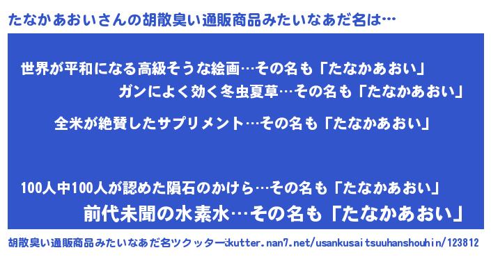 | 男性向けラノベタイトル風あだ名 | 『たなかあおいの嫁は女の子じゃないと思った?』 |