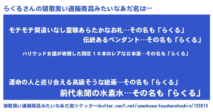 | 意味不明あだ名 | 『住所不定無職らくる(65歳)』 |