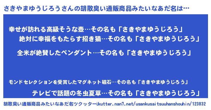 | 意味不明あだ名 | 『とにかく怪しいさきやまゆうじろう』 |