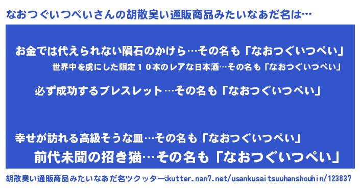 | ヘコむあだ名 | 『なおにー』『なおつぐいつぺい(笑)』 |