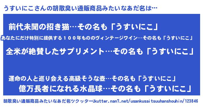 | 意味不明あだ名 | 『とにかく怪しいうすいにこ』 |