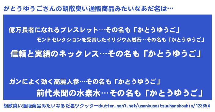 | ヒーロー風カッコイイあだ名 | 『暗黒騎士カト』『スーパーカトウユウゴ』 |