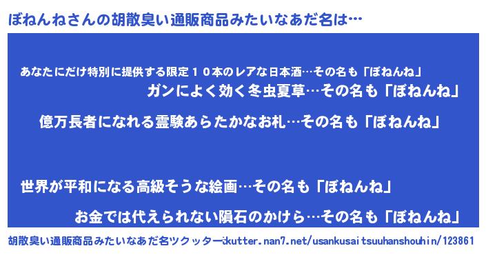 | ヒーロー風カッコイイあだ名 | 『スーパーボネンネ』『仮面ボネダー』 |