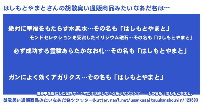 | 男性向けラノベタイトル風あだ名 | 『はしもとやまとの憂鬱』 |