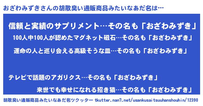 | ヘコむあだ名 | 『酢こんぶ』『おざお』『おざにー』 |