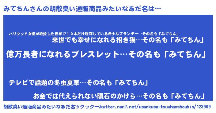 | 欧米人風あだ名 | 『マイケルみてちん』『ダニエルみてちん』 |