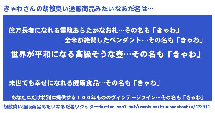| ヘコむあだ名 | 『なまこ酢』『きゃもー』『きゃを』 |