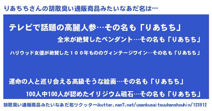 | ヘコむあだ名 | 『りあお』『なまこ酢』『りあにゅー』 |