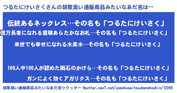 つるたにけいさくさんの胡散臭い通販商品みたいなあだ名をツクッター!