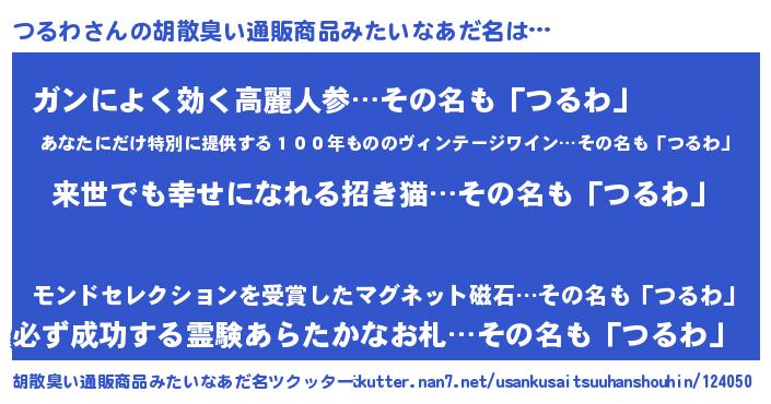 | ヘコむあだ名 | 『つるわ(小並感)』『つるふぇ~』 |