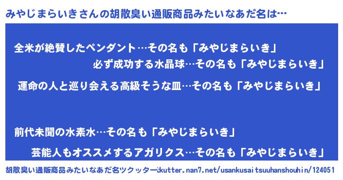 | 意味不明あだ名 | 『みやじまらいきフォーエバー』 |