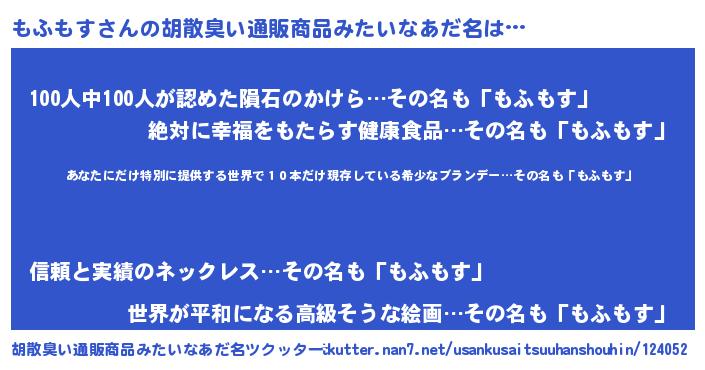 | 意味不明あだ名 | 『住所不定無職もふもす(85歳)』 |