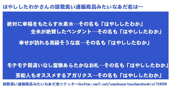 | 意味不明あだ名 | 『はやししたわかフォーエバー』 |