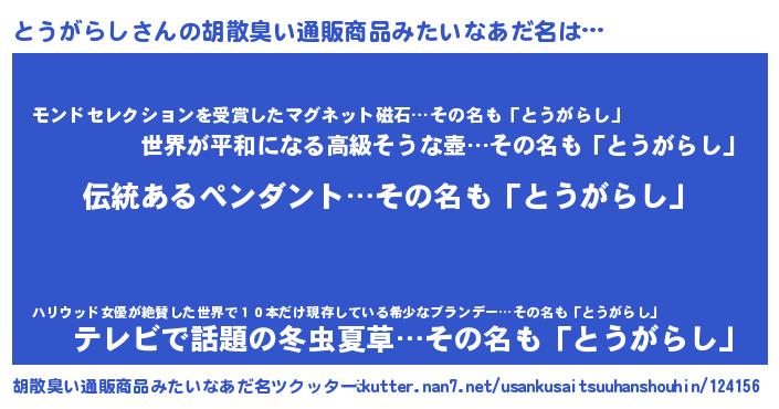 | ポケモン風あだ名 | 『ヒトウガラシ』『トックウザ』 |