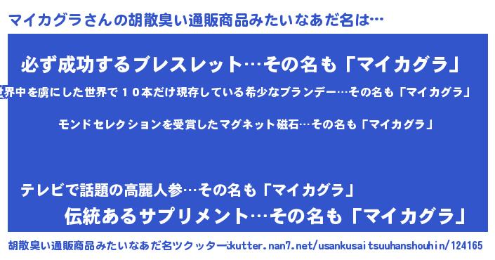 | ヒーロー風カッコイイあだ名 | 『慈愛の使者マイカグラ』『幻影騎士マイ』 |