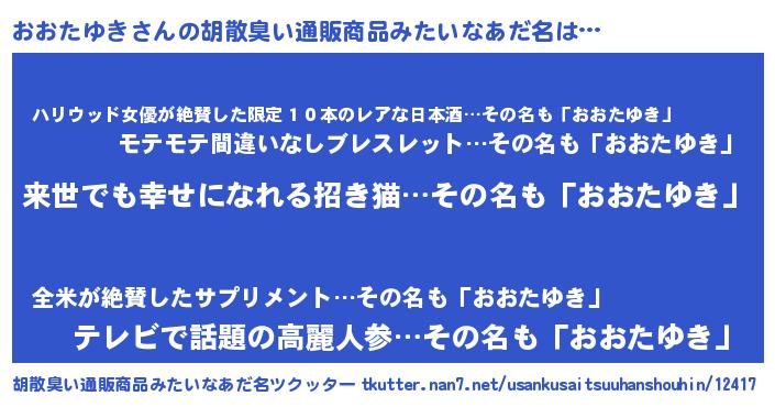 | 意味不明あだ名 | 『永久保存おおたゆき』『自称おおたゆき』 |